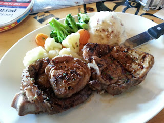 Leg of lamb seasoned with our Mama seasoning and grilled to perfection. Served with mashed potatoes and seasonal veggies.